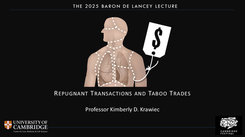 Professor Kimberly D. Krawiec from the University of Virginia School of Law delivered the 2025 Baron de Lancey lecture discussing "Repugnant transactions and taboo trades" — markets that are morally contested and sometimes even prohibited, such as sex work, commercial surrogacy, and the sale of organs, eggs, and sperm. She asked how we, as a society, decide what is up for sale and what is off-limits. The talk delved into these and other restricted trades. It identified how they are regulated by legal regimes as well as social norms, evaluate the consequences of different approaches, and explore potential paths forward.